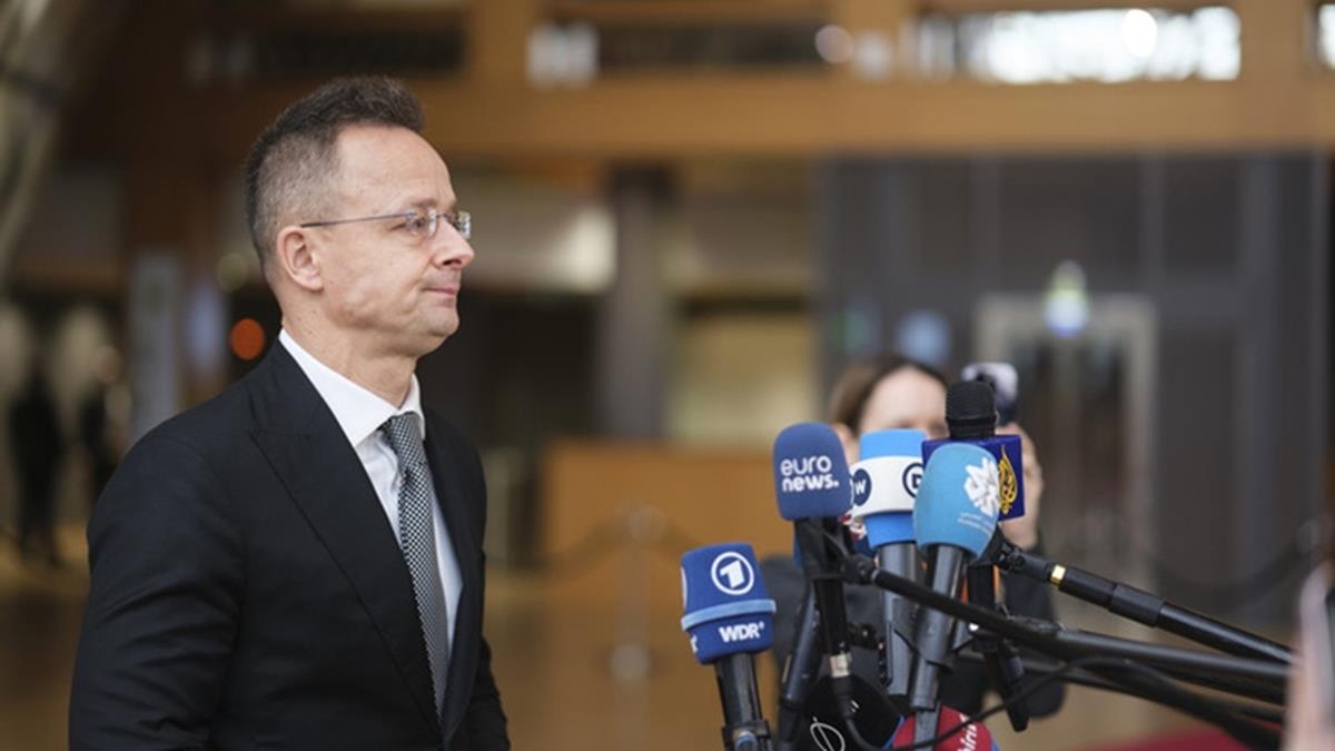 Budapest has also blocked the EU’s 20th package of sanctions on Russia amid an oil supply row with Kiev · BRUSSELS, BELGIUM - FEBRUARY 23: Hungarian Foreign Minister Peter Szijjarto speaks to media in Brussels, Belgium on February 23, 2026. © Getty Images / Thierry Monasse · [RT] Hungary has blocked the EU’s proposed €90 billion ($106 billion) emergency loan for Ukraine, as well as the latest package of sanctions on Russia,…