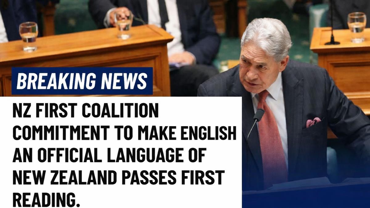 The New Zealand First English Language Bill has passed its first reading in Parliament, marking an early legislative milestone for the party’s policy agenda this term. Party leader Winston Peters described the vote as a victory for “common sense,” saying the legislation would provide clarity around the status of English in New Zealand law. · “This bill provides clarity and certainty in legislation of the official status of the English language…