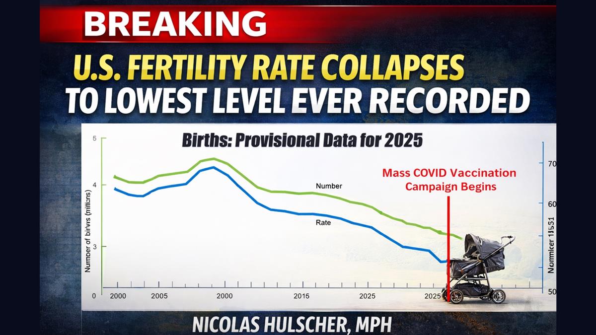 A new CDC report confirms America is now reproducing at the lowest rate in recorded history, with fertility dropping 5.7% since 2021 alone. · by Nicolas Hulscher, MPH · A newly released CDC report confirms that the U.S. fertility rate has declined to the lowest level ever recorded in modern American history. · In 2025, the general fertility rate fell to just 53.1 births per 1,000 women aged 15–44, marking yet another historic low. · At…
