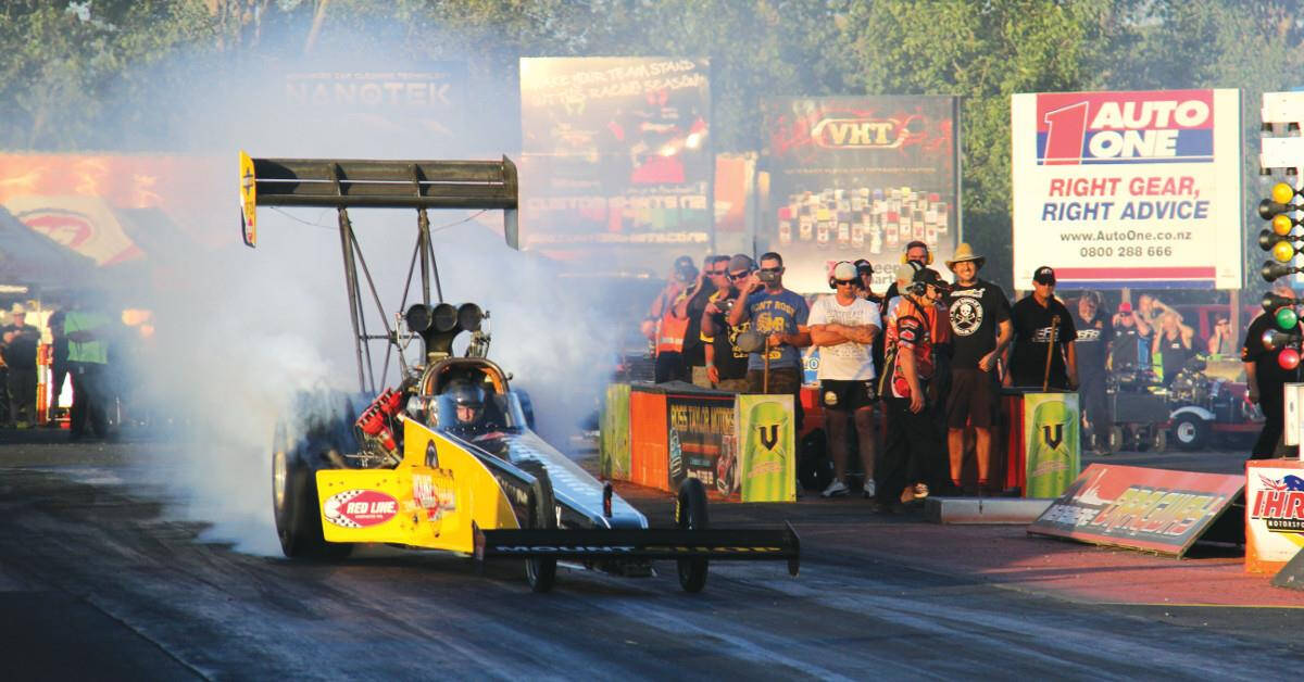In recent years, primarily at Meremere Dragway, New Zealand drag racing fans have been treated to some of the most extraordinary Top Fuel drag racing thanks to Marsh Motorsport and Mount Shop. Top Fuel is the highest ranked form of drag racing with nitromethane fuel being used to generate the most incredible drag racing experience for fans and racers alike. Due to the volatile nature of this form of drag racing, the Top Fuel class is also the most expensive. Engines and drivetrain components are pushed to destructive point as these missiles blast the quarter mile drag strip in the 4 second zone at over a staggering 300 mph.
